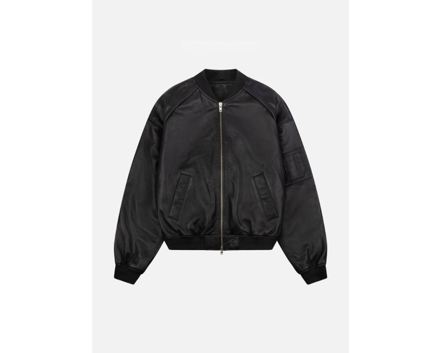 LEATHER PADDED BOMBER JACKET BLACK