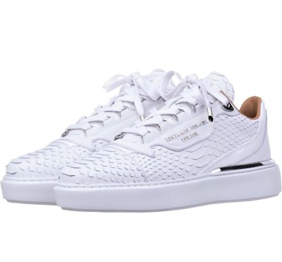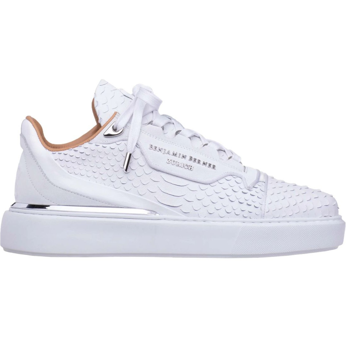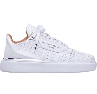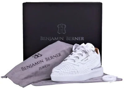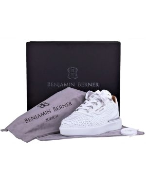 - Muške niske tenisice - 100% ručno Izrađene - Izrađene tradicionalnim tehnikama rukotvorina s najboljim umijećem izrade - Podstavljeni ovratnik i jezik - Utisnuti logo na jeziku - Gornjište od najkvalitetnije talijanske teleće kože s efektom pitona - Podstava od ultra mekane teleće kože - Metalne rupice za vezice - Kožni zakrpa s utisnutim logom Benjamina Bernera - Pamućno voskirane vezice - Ekskluzivni dizajn XL EVA bijelog potplata s utisnutim uzorkom pete - Visoko udoban uložak od memorijske pjene koji podržava stopalo, smanjuje udarce pete - uključene vrećica za prašinu s oznakom brenda i dodatne vezice - Odgovara pravoj veličini