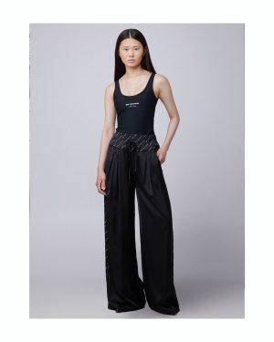 SATIN PAIGE PANTS BLACK - Shoetique