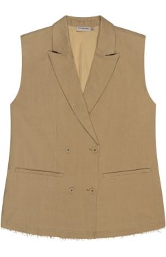 SLEEVELESS FRAYED BLAZER OLIVE GOLD